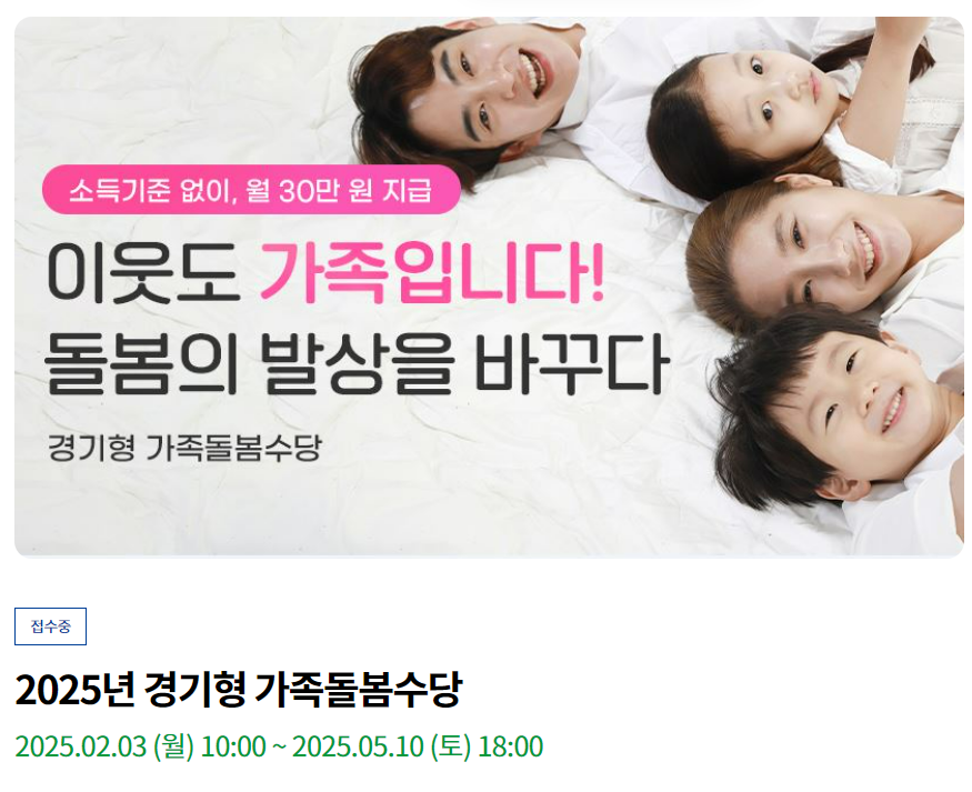 2025년 경기형 가족돌봄수당 신청하고 월 30~60만 원 지원받자