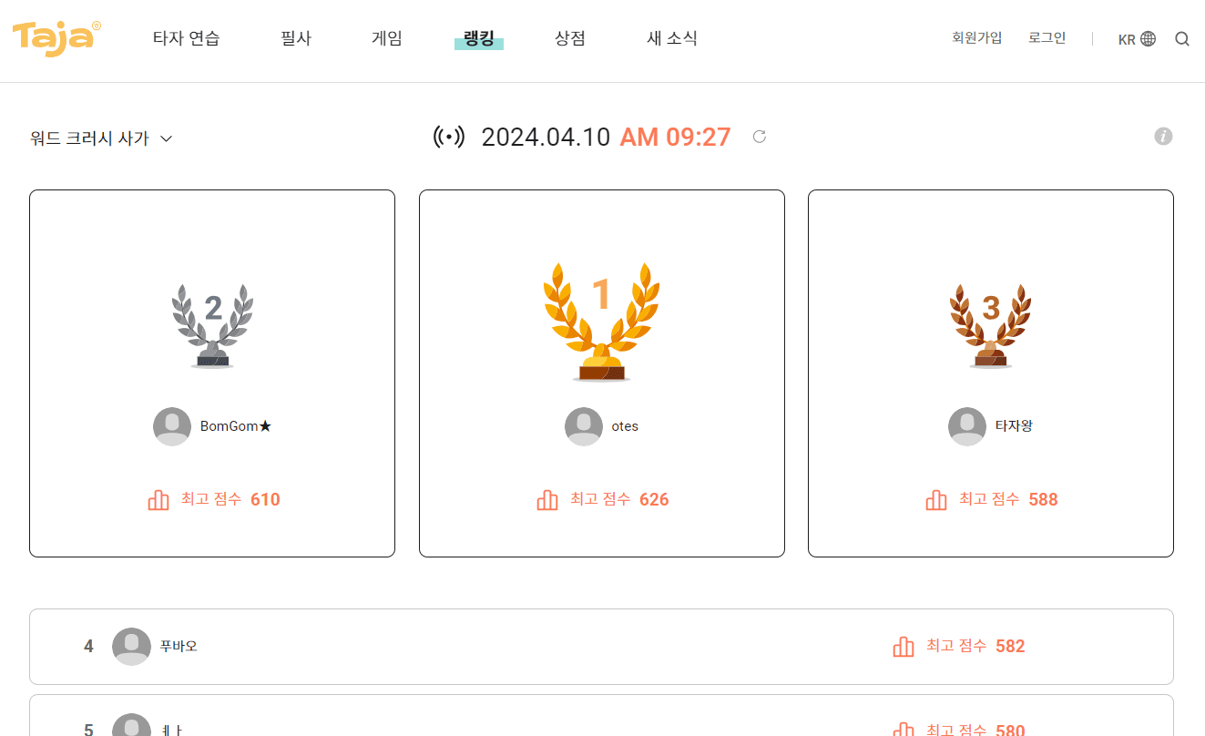 2024 최신 버전에서는 랭킹 게임들이 더 다양해졌고, 문학작품 또는 성경을 필사하면서 타자연습할 수 있는 서비스가 추가되었습니다.