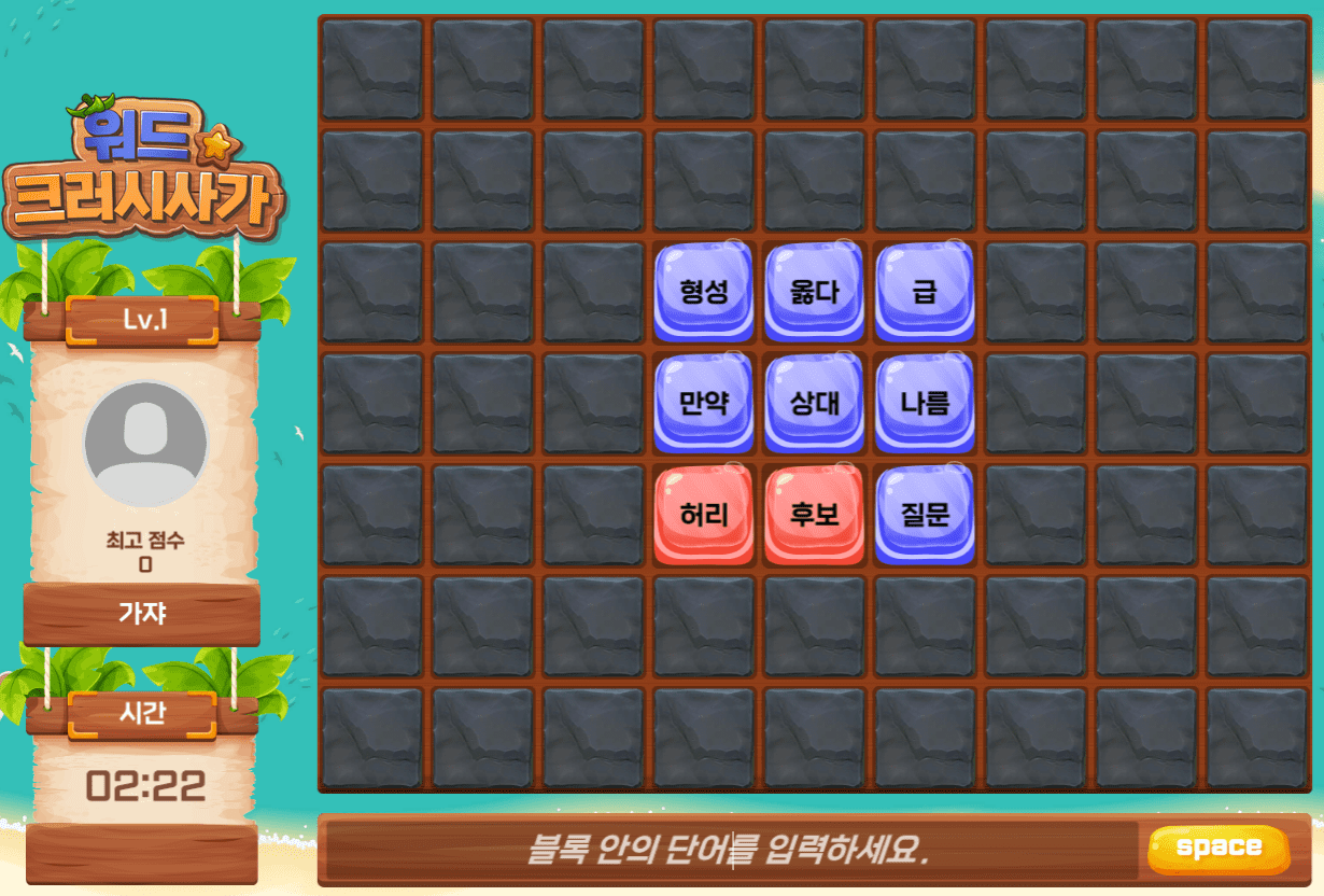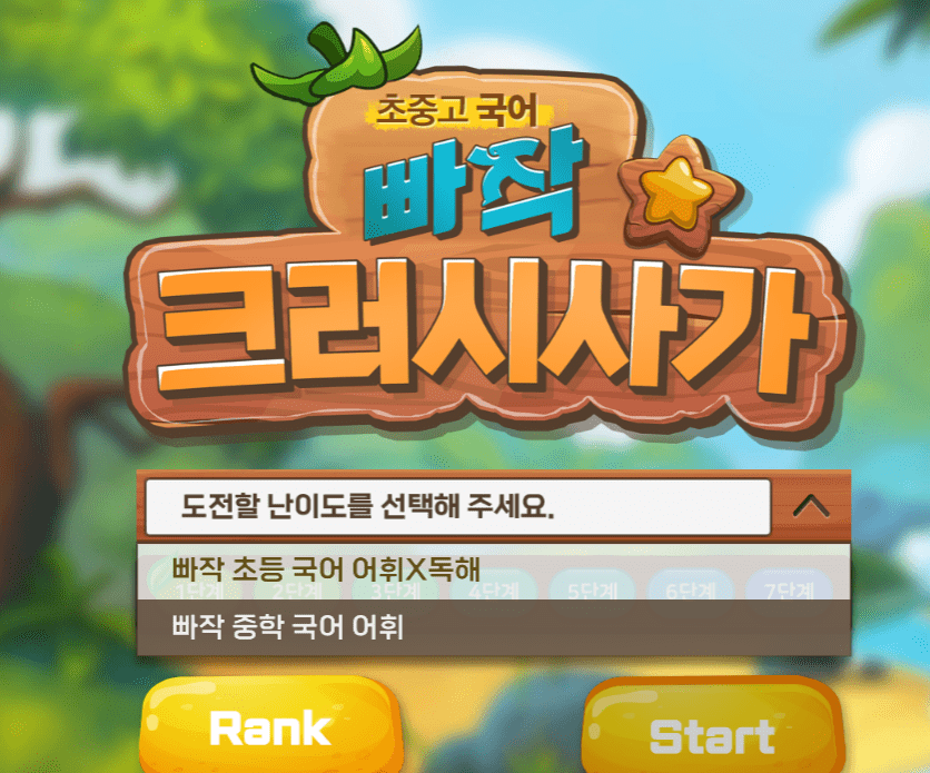 빠작 크러시 사가 게임 방식은 워드 크러시 사가와 동일합니다. 다만 차이점은 빠작 크러시 사가는 초등 또는 중학교 국어 어휘와 독해 위주로 구성되어 있다는 점입니다. 게임 입장 때 초등 또는 중등 국어 난이도를 선택할 수 있습니다. 워드 크러시 사가의 난이도가 어려운 분들은 빠작 크러시 사가를 추천드립니다.랭킹은 워드와 빠작 게임이 구분되어 등록됩니다.
