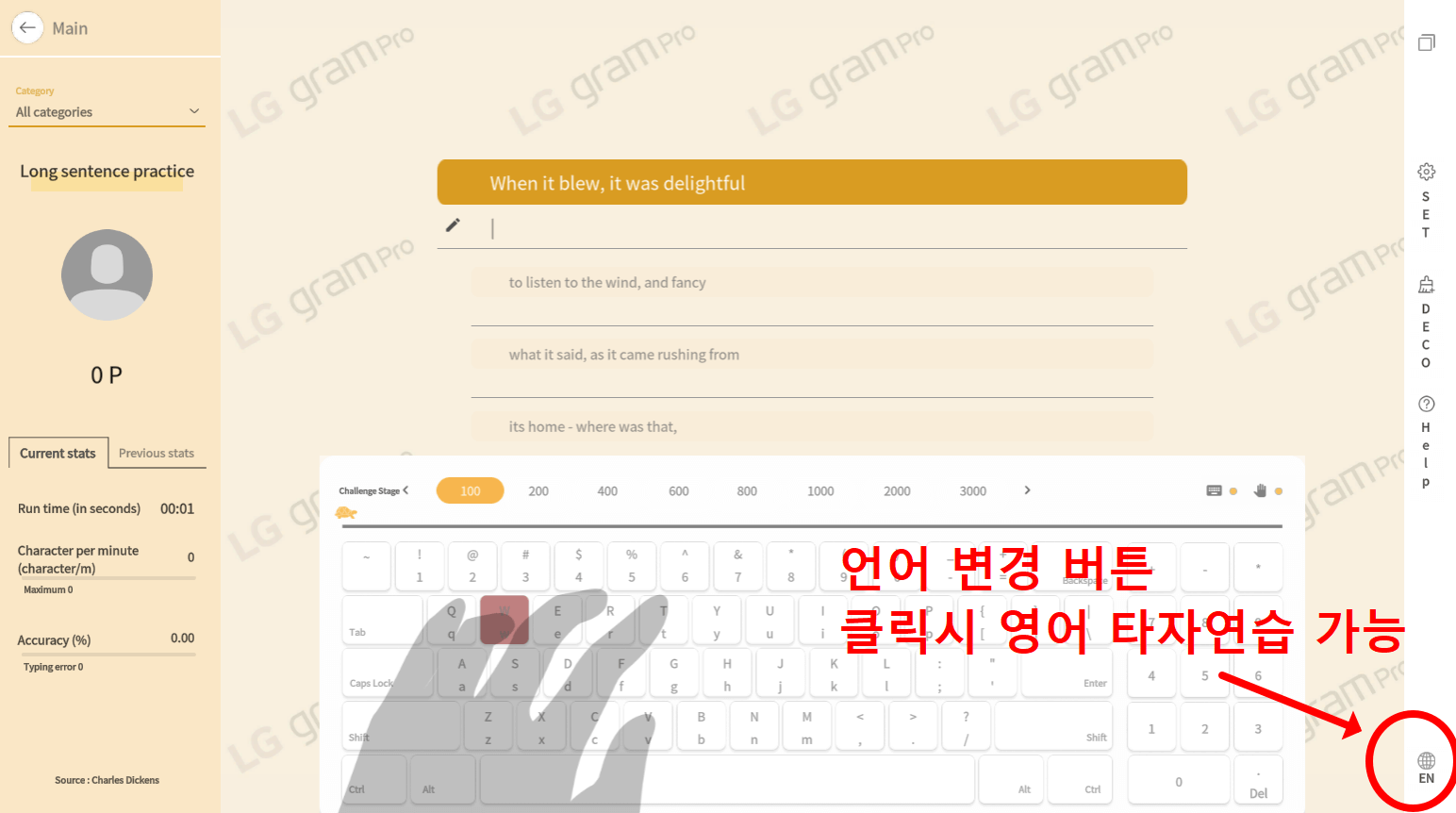 하지만 인터페이스가 직관적으로 디자인되어 있어서, 간단한 영어 표현만 해석할 수 있다면 재미있게 영어 타자연습을 즐길 수 있습니다.